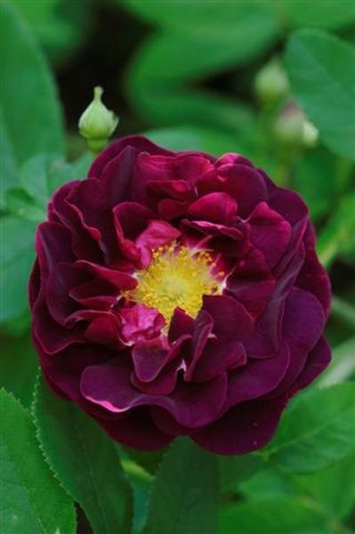 Vana prantsuse ehk äädikaroos. Kõrgus kuni 90 – 120 cm, põõsa laius 90 cm. Põõsal tugev ja püstine kasvukuju. Õied pooltäidetud, nende keskel uhkeks kontrastiks kollased tolmukad, tugevasti lõhnavad. Lehed on väikesed, võrsed praktiliselt ilma okasteta. Roos õitseb eelmise aasta võrsetel. Talvekatet ei vaja – rohkema õitsemaie saamiseks võiks võrsed talveks maha painutada. Haiguskindlus väga hea.