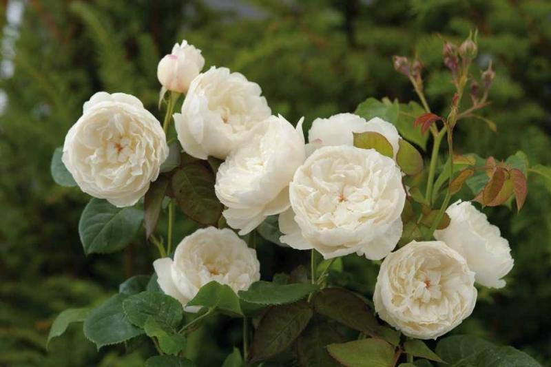 Põõsasroos William and Catherine on valge roos, millel on hästi täidetud vana roosi õied. Värsked õied on alguses õrnalt aprikoosi värvi, millest saavad kiiresti kreemvalged ja siis puhasvalged õied. Õis puhastab end ise – kroonlehed kukuvad peale õitsemist ise maha. Hea tervisega, atraktiivne põõsas, pigem püstise kasvuga. Põõsa kõrgus 1,2 m, laius 1 m. Keskmise tugevusega mürrilõhnaline roos. Parim kasvukoht on täispäike. Haiguskindlus ja talvekindlus on väga head, talvel piisab üles muldamisest või multsimisest.