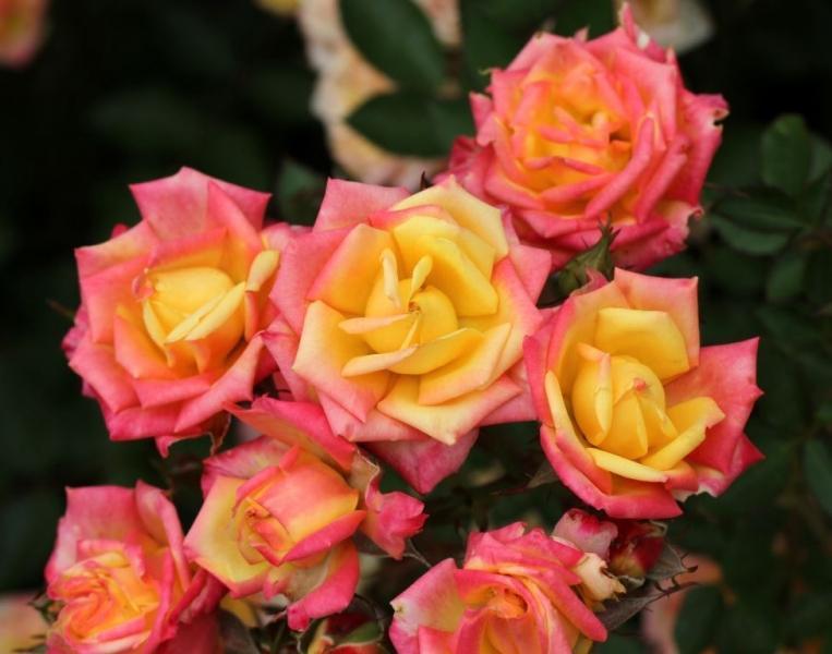 Miniroos Little Sunset on särav väike roos – õied päikeselised kollakasoranzid, täidetud. Põõsas kõrgusega 50 cm, laiusega 50 cm – talvekindel ja haiguskindel.