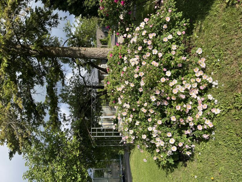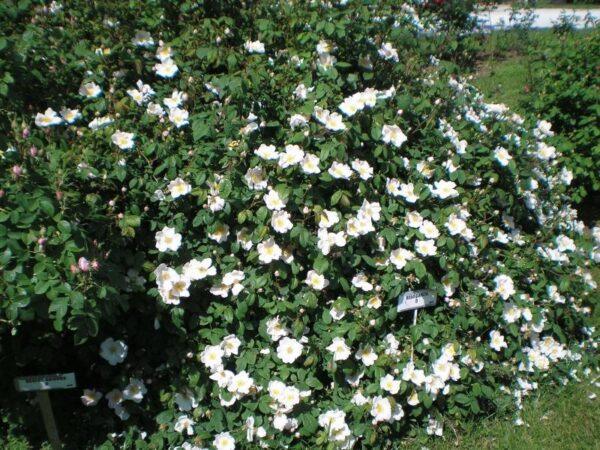 Õunapuuõite sarnased valkjasroosad suured, lihtsad (4 – 8 kroonlehte) õied. Lõhnavad tugevasti. Õitseb rohkelt, kogu põõsas kattub nende imeliste õitega. Põõsas madalam, kaarjate ogaliste võrsetega. Lehestik heledam rohelineja matt. Põõsa kõrgus90 – 150 cm, laius 120 cm. Roos õitseb eelmise aasta võrsetel.