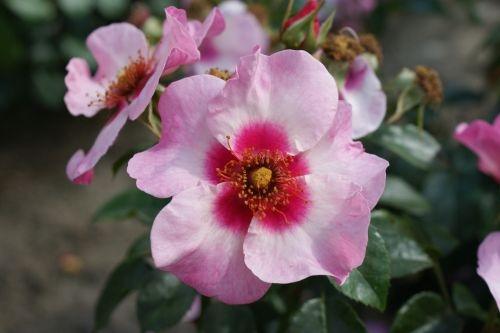 Kroonlehed roosad, südamik tumeroosa. Lihtõis 4 – 8 kroonlehte, õied kobarates vürtsika lõhnaga. Lehestik läikiv, põõsa kõrgus 95 – 110 cm, laius 130 – 150 cm. Korduvõitseja.