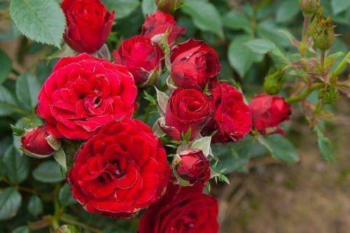 Õied sametised tumepunased, suured, täidetud (17 – 25 kroonlehte), suurtes kobarates. Õitseb korduvalt kuni külmadeni. Lehed läikivad, tumerohelised, põõsas mitte väga kõrge – kuni 200 cm, laius 100 cm.