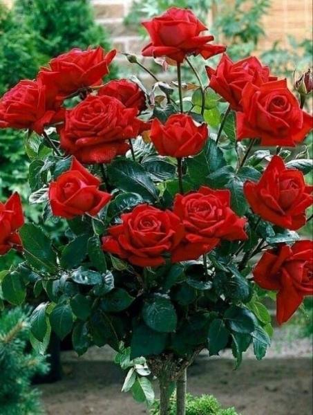 Roosipuu Ingrid Bergman ehk tüviroos – tüve kõrgus 110+ cm. Tüvi pookekohast pikemaks ei kasva, poogitud roos läheb iga aastaga kaharamaks. Sort Ingrid Bergman on tüvel väga kiire remonteeruja – pidevalt toodab uusi õisi / äraõitsenud õied tuleb muidugi kohe ära lõigata.